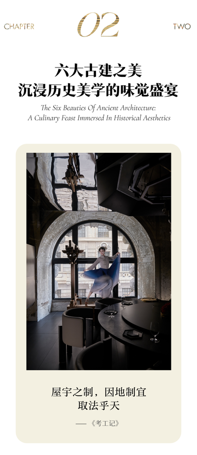 经过抽象、转译后,这些建筑美学化为包间主题、艺术装置以及美学菜点,与美食、舞蹈、音乐融为一体化,形成视觉感受和味觉体验的完美演绎。