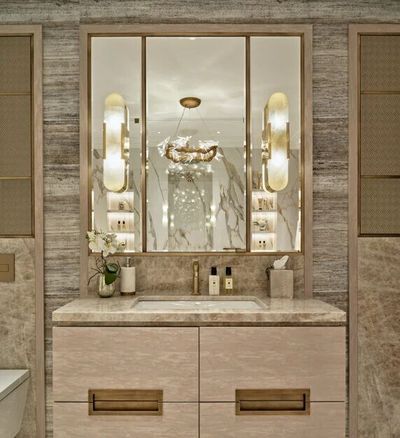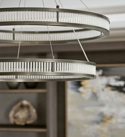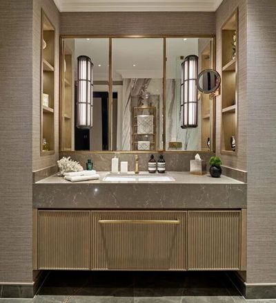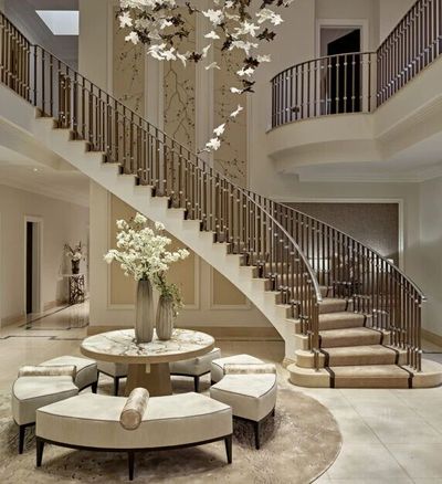 实现这一愿景的关键策略之一是对照明艺术的极致运用。设计团队深知,第一印象至关重要。在宏伟的入口门厅,他们选择了一盏层叠式水晶吊灯作为视觉焦点。这盏吊灯不仅气势恢宏,其散发的非凡光彩更暗示着后续空间将带来的更多惊喜,成功地从宾客踏入的第一步起,就营造出令人难忘的奢华氛围。除了震撼的视觉呈现,Hill House Interiors 对奢华的诠释也深入到空间的每个功能细节。