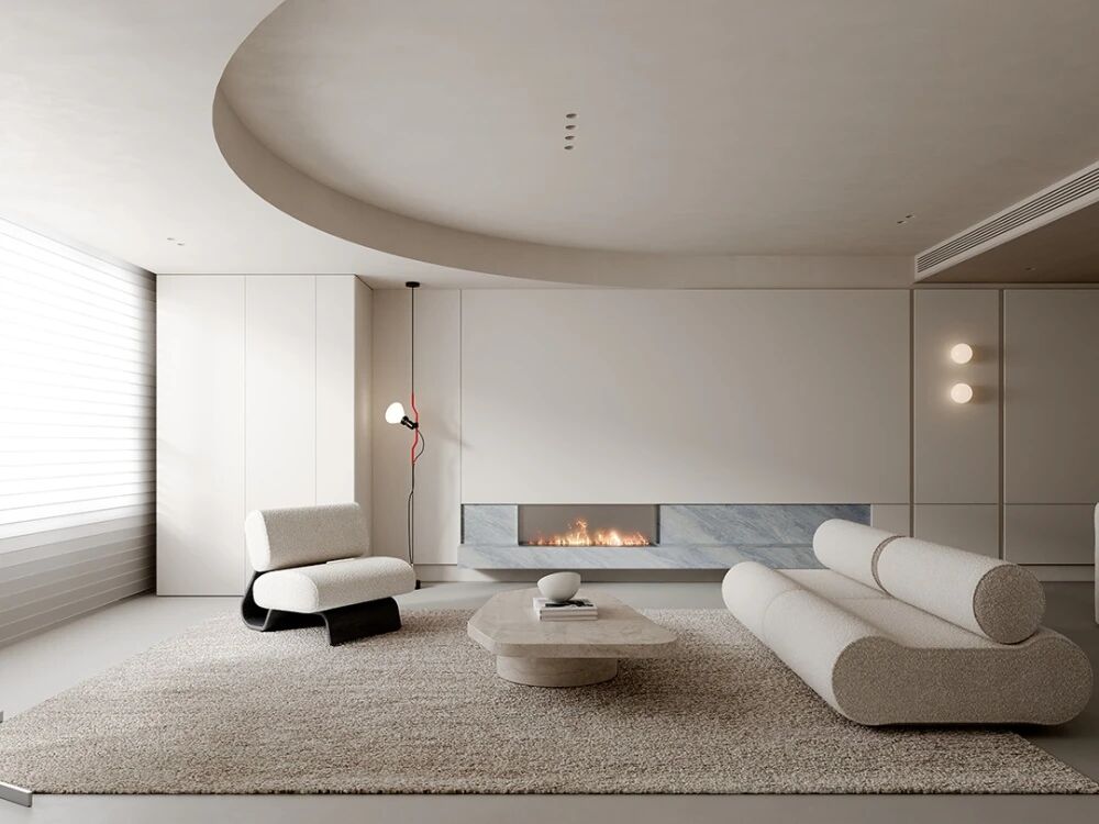 设计旨在营造兼具自然质感与温情体验的空间。选用原木、棉麻等材质奠定素雅基调,并以壁炉为核心营造沉浸式休闲场景,传递岁月静好的生活意境。