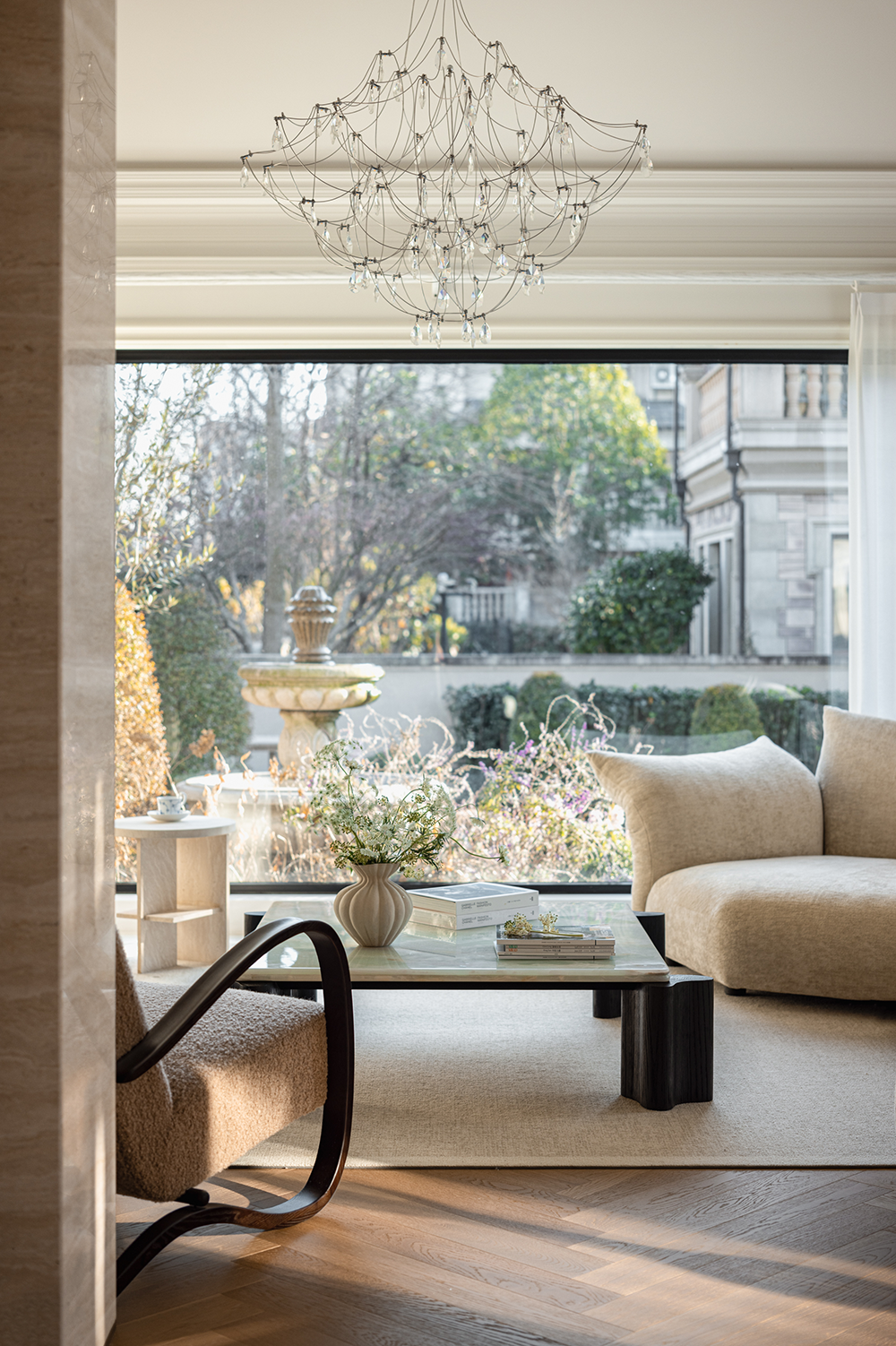 “造物忌巧,居室贵精” 的理念,让日常劳作成仪式。低饱和天然材质搭配巨幅落地窗,引入天光四季,尽显东方园林 “隔而不断,景随身迁” 的流动之美。