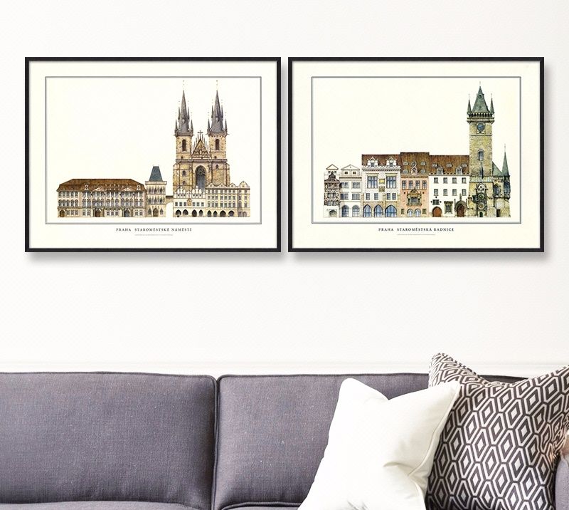 简约现代北欧风建筑装饰画客厅餐厅卧室挂画教堂复古街区